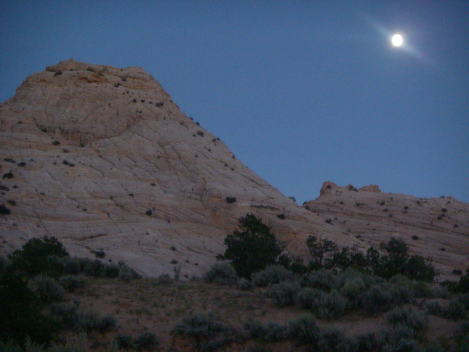 Afternoon hike across the red rock to Squaw Canyon where we found a high point amongst the many misshapen sandstone pinnacles and mesas. The objective -- finding a suitable location to view the sunset. But the stars and moon that joined us on the night walk back across the desert stole the show.